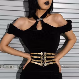 SHEIN Women Fashionable Ring Decor Wide Corset Belt Accessories For Ladies For Dress Goth Punk Gold Belt Women Corset Belt For Dress,Waist Trainer Waist-Sha