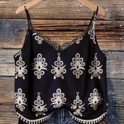 Shein Plus Size V-Neck Lace Patchwork Cami Top - Black Floral Print
