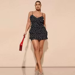 Shein Plus Size Women's Elegant Casual Polka Dot Ruffle Hem Bodycon Slip Dress - Beach