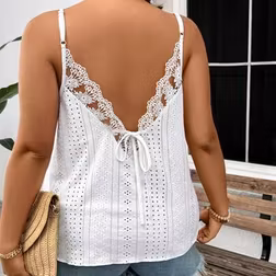 Shein Plus Size Elegant Lace Patchwork V-Neck Camisole - Casual Vacation Wear