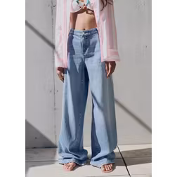 Mango Wide-Leg Pleated Jeans - Light Blue