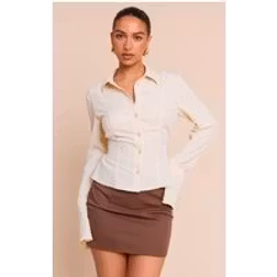 PrettyLittleThing Cream Textured Satin Tie Back Shirt - White