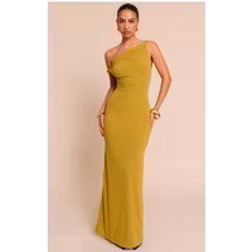 PrettyLittleThing Double Layered Chiffon Asymmetric Maxi Dress - Olive