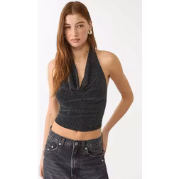 Stradivarius Shimmery Halter Top - Black