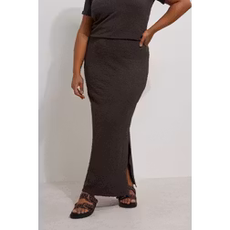 Yours Textured Side Split Maxi Skirt - Chocolate Brown