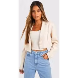 Womens Boohoo Basics Woven Single Button Crop Blazer - Beige - 6, Beige