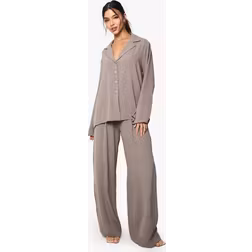Womens Woven Oversized Shirt & Drawstring Trouser Co-Ord - Brown - 6, Brown