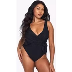 Boohoo Plus Swimwear Essentials Tummy Control Wrap Swimsuit In Black - black - 24