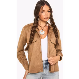 boohoo Womens Suede Look Oversized Shirt - Tan