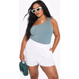 boohoo Womens Plus Seersucker Stripe One Shoulder Swimsuit - Green