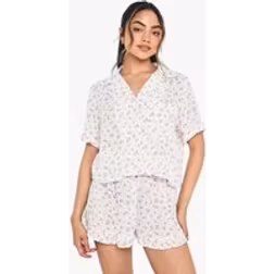boohoo Womens Floral Print Cheesecloth Short Sleeve Shirt & Shorts Pyjama Set - Pink