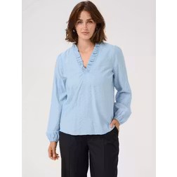 Kaffe Feminine Chambray Blouse with Flounce - Blue