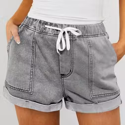 SHEIN Women Beach Lightweight Summer Jean Shorts Casual Baggy Drawstring Elastic Waist Roll Up Hem Comfy Vacation Cowgirl Denim Shorts