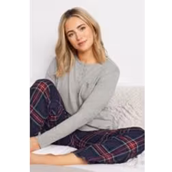 M&Co Grey Cotton Check Pyjama Set 18-20 M&Co Womens