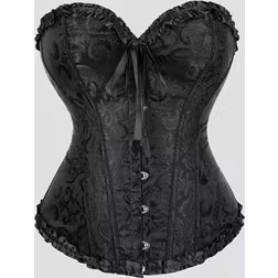 SHEIN Women's Floral Jacquard Ruffle Hem Bustier Crop Top, Bodycon Waist Cincher Corset Top, Suitable For New Year Party, Valentine's Day, Holiday, St. Patr