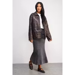 Warehouse Denim Fishtail Midi Skirt - Grey