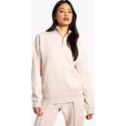 boohoo Tall O Ring Detail Half Zip Sweatshirt - Beige
