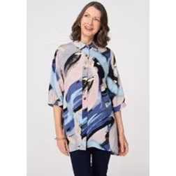 Izabel London Brushstroke Print Collared Relaxed Shirt - Blue
