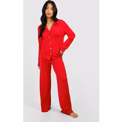 boohoo Petite Long Sleeve Shirt Trousers Pyjama Set - Red