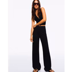 Bershka Wide Leg Trousers - Black