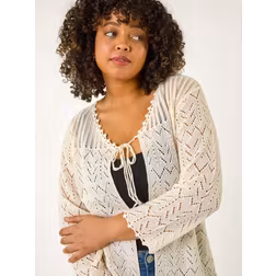 Roman Curve Crochet Tie Front Cardigan - Natural