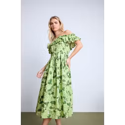 PixieGirl Petite Floral Bardot Midi Dress - Green