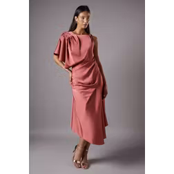 Coast Women's Asymmetric Pleated Midi Holiday Dress With Gold Detail in Rose | Size: 16