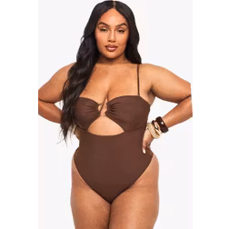 boohoo Women's Plus Resin Hard Wear Square Neck Swimsuit in Chocolate | Size: 22