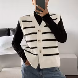 Siren Gaze Women Casual Striped Knit Vest, , Spring/Summer, Sleeveless Tops, Striped Tops, Thin Sweaters,White Border, Casual Commuting, Can Be Worn Alone Or Und