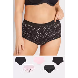 Yours 5 Pack Plus Size Pink & Black Heart Print Full Briefs Size 38-40