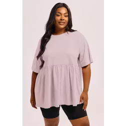 Yours Curve Light Pink Cotton Peplum Top, Women's Curve & Plus Size, Yours - 22-24