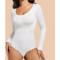 SHEIN Women's White Bodysuit Shapewear Tummy Control Butt Lift Seamless Bodysuit Long Sleeve