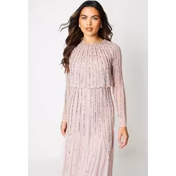 Coast Long Sleeve Midi Dress Embellished Pleated Skirt - Pink