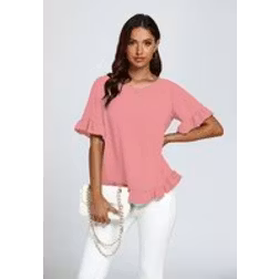 FS Collection Frill Detail Short Sleeves Top - Light Pink