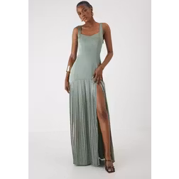 Misspap Premium Satin Square Pleated Skirt Bridesmaid Dress - Sage