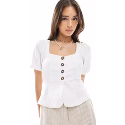 New Look Women's Plus Size White Linen Blend Button Up Peplum Top Curves - UK 18