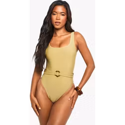 boohoo Women's Resin Hardwear Square Neck Swimsuit in Olive | Size: 10