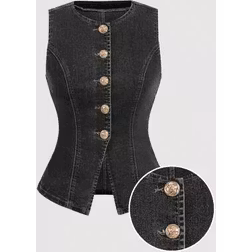 SHEIN Women's Sleeveless Denim Top, Casual Stretchy Skinny ,Summer Black Jean Vest