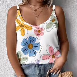 Shein Womens Plus Summer Allover Floral Printed Tank Top