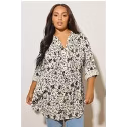 Yours Curve White Floral Print Pintuck Blouse, Women's Curve & Plus Size, Yours - 16