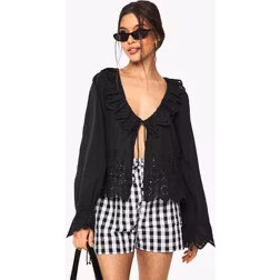 Womens Ruffle Broderie Tie Detail Blouse - Black - 8, Black