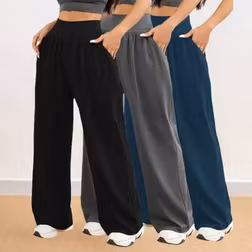 SHEIN 3Pcs Women Loose Fit Casual Wide Leg Pants, Thin Fabric High Waist With Pockets, Suitable For Indoor/Outdoor Fitness, Running, Autumn/Winter Tights