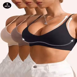 SHEIN 3pcs/Set Seamless Ribbed Wireless Casual Women Bras Cozy And Elegant Details
