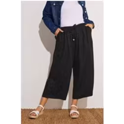 Yours Plus Size Black Cropped Wide Leg Linen Trousers Size 16