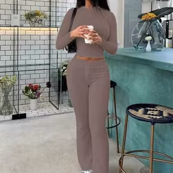 SHEIN Autumn Women's Fashionable Belly-Baring Long-Sleeved Top, Slim-Fitting Lace-Up Flared Pants Sports Suit