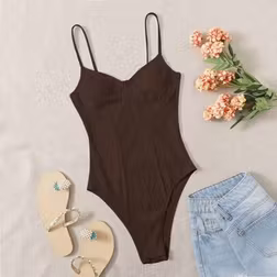 SHEIN Solid Bustier Rib-knit Bodysuit