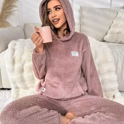 SHEIN Slogan Patched Pocket Drop Shoulder Flannel Hoodie & Pants Lounge Set Outfit Cozy And Elegant Details, Fall Winter Clothes