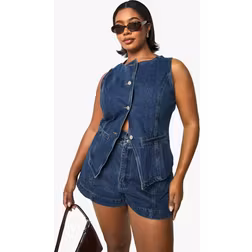 Womens Plus Denim Longline Waistcoat - Blue - 26, Blue