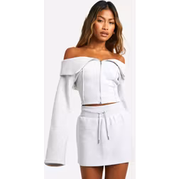 Womens Bardot Off The Shoulder Zip Through Sweatshirt And Skirt Set - Grey - L, Grey