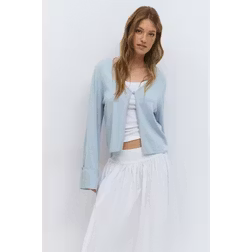 Gina Tricot Folded Sleeve Knitted Cardigan - Blau